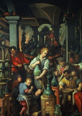 Die Werkstatt des Alchemisten, 1570(The Alchemist's Workshop, 1570 (oil on slate))Jan van der Straet |