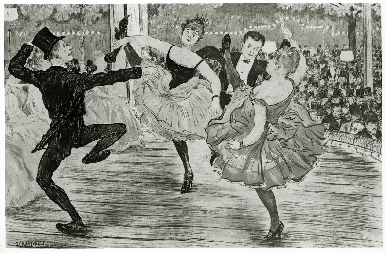 quadrille · tanzen · tänzer · tanzen · paar · paare · männlich · weiblich · kann kann · cancan · musikhalle · moulin rouge · kabarett · innere · paris · pariser · spaß · unterhaltung · freizeit · performance · künstler · ausübende künstler · entertainer · entertainer · durchführen · theater · Bibliotheque des Arts Decoratifs, Paris, France / Bridgeman Images |