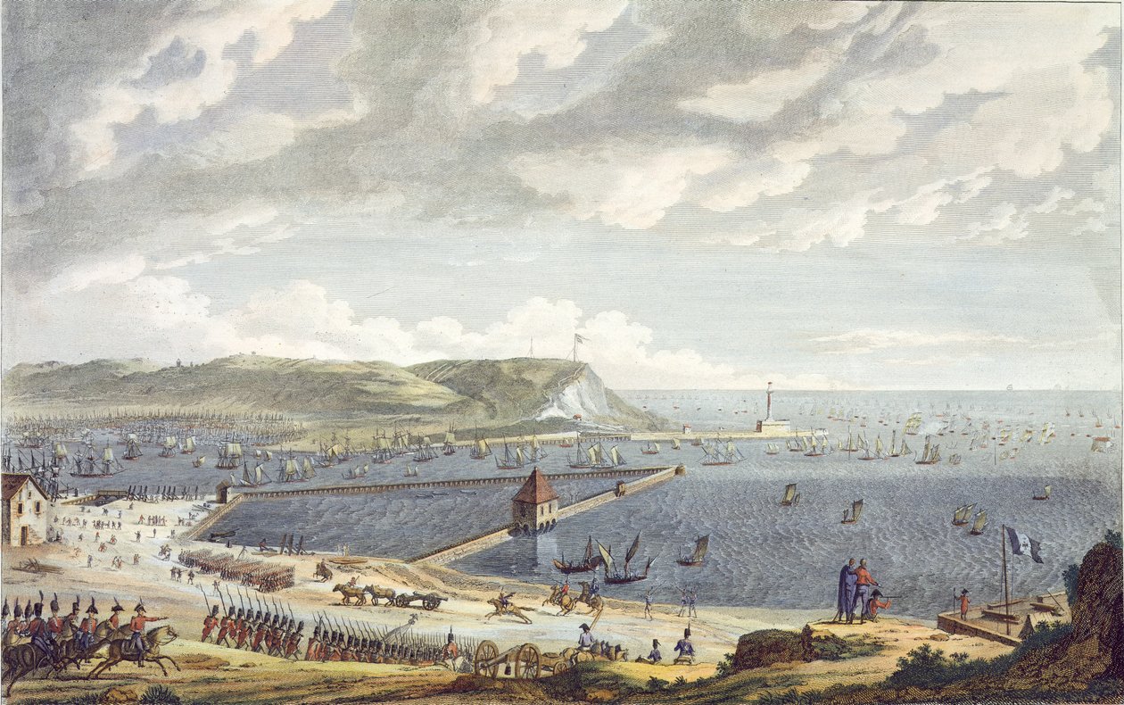 hafen · truppenschiffe · napoleons armee · landschaft · napoleonische kriege · druck · Private Collection / Bridgeman Images |