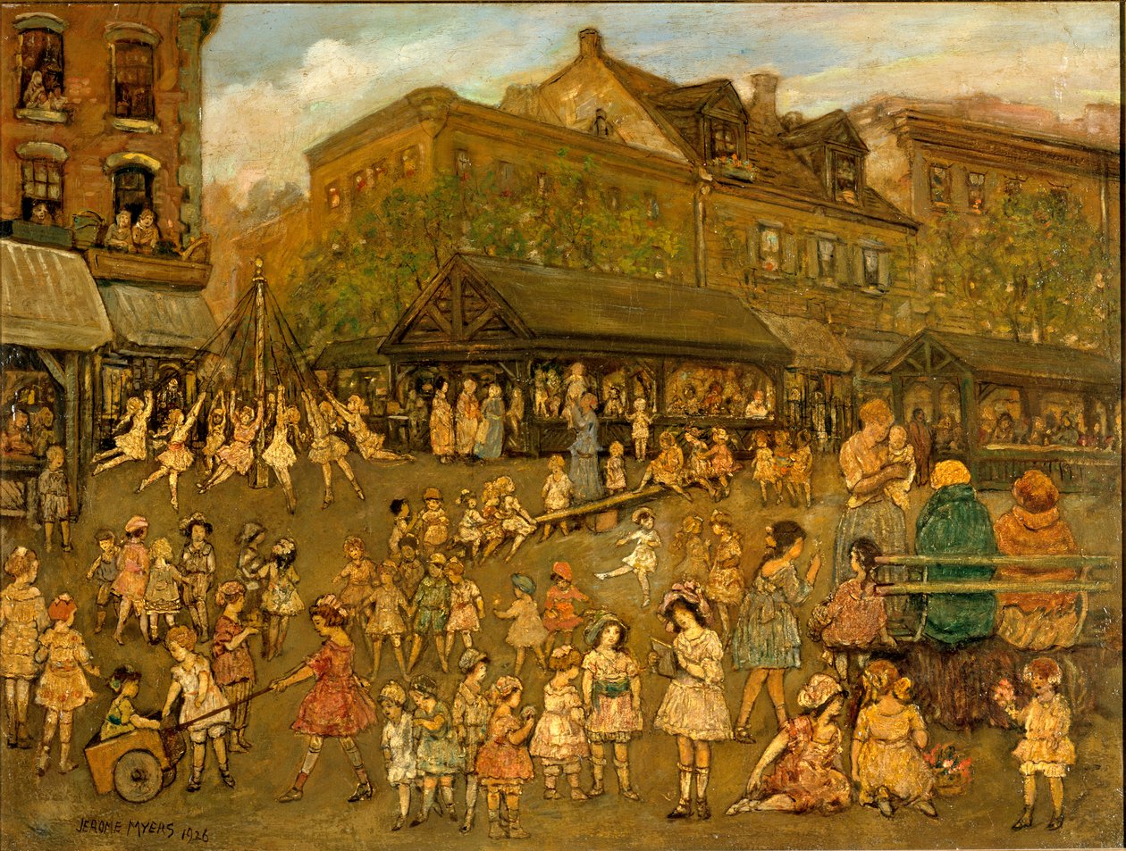 gebäude · frau · frauen · frau · leute · kindheit · mann · kind · kinder · mädchen · mädchen · beschäftigt · mann · männer · ausbildung · anstrich · land · spiel · spielen · spielplatz · kerl · schule · farbe · freude · position · jahrhundert · froh · maibaum · konzept · zwanziger jahre · schoolyard · fröhlich · see-saw · öl anstrich · vereinigte staaten von ameri · farbe · smithsonian anstalt · zwanziger jahre · pädagogische anstalt · 20. jahrhundert · amerikanisch · amerika · portrait · oil on board · heritage art · oil on fiberboard · jerome myers · myers · jerome · Heritage Art/Heritage Images