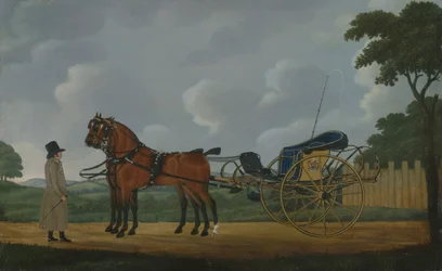Ein Gentleman mit seinem Paar von Bays, angespannt an eine Curricle(A Gentleman with His Pair of Bays Harnessed to a Curricle)John Cordrey |
