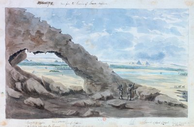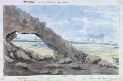 Blick von den Steinbrüchen von Toora Maasara(View from the quarries of Toora Maasara'. Three groups of pyramids can be seen in the distance. From left to right, Saqqara, Abooseer, and Giza (Giza). John Gardner Wilkinson (1797-1875) English explorer and Egyptologist.)John Gardner Wilkinson |