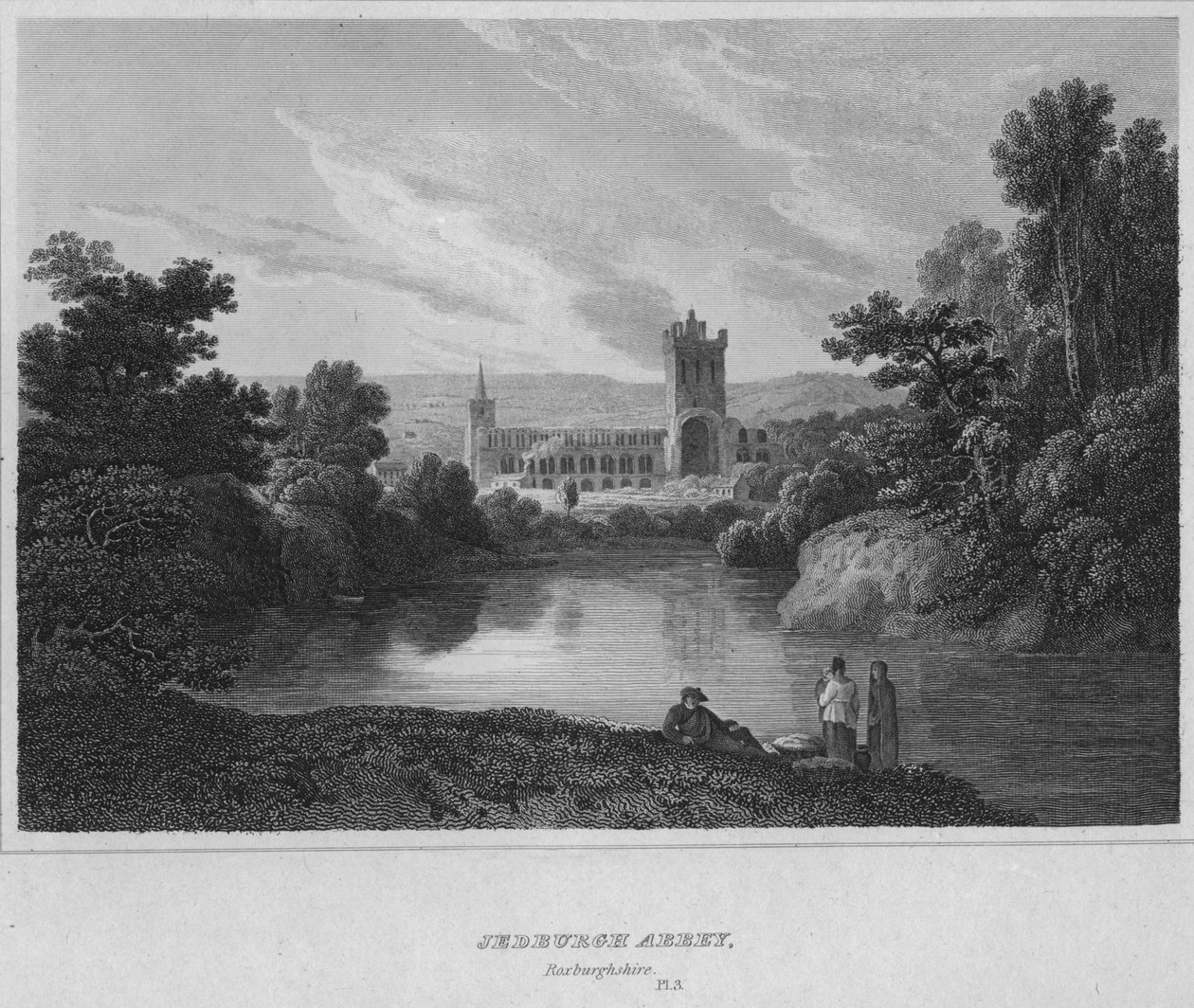 draußen · frau · frauen · frau · leute · mann · mann · männer · fromm · architektur · religion · kerl · schottland · grafschaft · position · jahrhundert · entfernt · abtei · dame · konzept · rand · drei leute · errichtendes äußeres · einfarbig · publikation · 19. jahrhundert · schwarzes u. weiß · schwarzes und weiß · hintergrundleute · augustinian · 19.jahrhundert · historisch · engraving · landscape · roxburghshire · john greig · scott · walter · sir walter · sir walter scott · walter scott · longman co · greig · john · borderland · border antiquities · jedburgh abbey · The Print Collector/Heritage Images