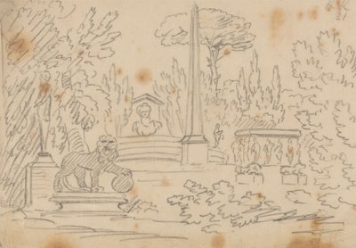 Obelisk und Statuen in einem Garten(Obelisk and Statues in a Garden)John Robert Cozens |