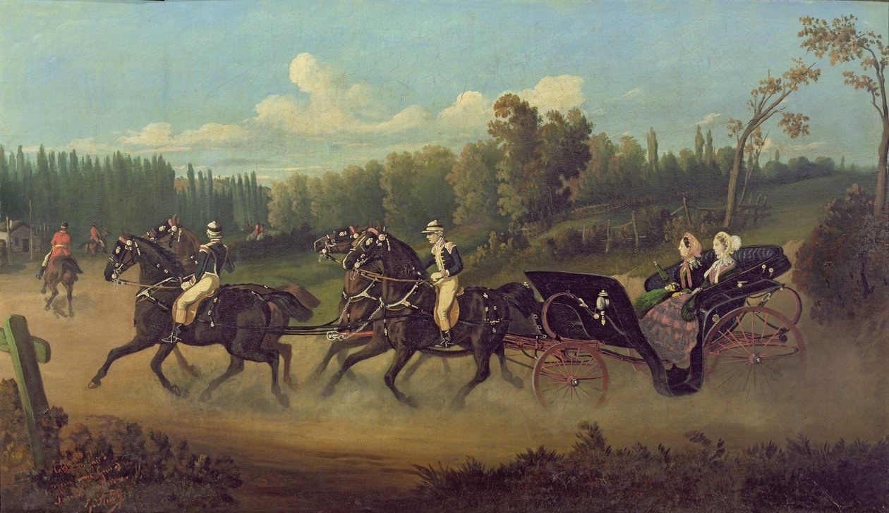 Der London-Farringdon-Kutschwagen passiert Buckland House, Berkshire Madame Celestine Nichols fährt im Richmond Park mit ihren Enkeln, 1879 Der London-Faringdon Kutschwagen passiert Buckland House, Berkshire Die Dover nach London Postkutsche Jagdtreffen, graviert von Philibert Louis Debucourt, frühes 19. Jahrhundert J. und W. Chaplins Dover-London Postkutsche auf der Straße Der Manchester und London Royal Mail Coach Postkutsche und Konkurrenzkutsche in Sicht Auf die Jagd gehen; ein Postillion und ein Paar mit einem Jagdwagen Kaiser Franz Joseph I. von Österreich bei einer Fahrt mit seinem Phaeton, 1864 Die königliche Postkutsche, Chelmsford nach London, 1799 Spaziergang im Pré Catelan in Paris Auf dem Weg zum Derby. Fiaker und Omnibus, gezogen von Pferden, auf dem Weg zu einem Derby Der Bath, Bristol und London Royal Mail Coach bei Nacht Beverley und Hull Passagierkutsche, ca. 1826 Die Exeter Royal Mail auf einer Landstraße Promenade au Bois Wilde Kutschfahrt Die Kutsche des Marquess of Bath Der Dover-Kutsche bergab Spaziergang im Wald Die neue königliche Post Zar Alexander II. (1818-81) fährt mit seinen Söhnen in Zarskoje Selo, 1850er Jahre Große herrschaftliche Ausfahrt Der Spaziergang, graviert von R. Woodman Ein Postillion auf einem Kutschpferd, 19. Jahrhundert, 1886 Die Postkutsche von Dartford, Crayford und Bexley Pferd und Kutsche