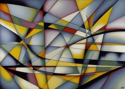 Abstrakt: Silber-Gelbe Kurven und Dreiecke 2(abstract: silver-yellow_curves+triangles 2)Josef Johann Michel |