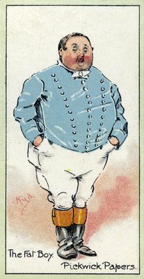 männlich · porträt · ganzkörperansicht · dickensianisch · viktorianisch · literatur · literatur · charakter · karikatur · fiktion · fiktionell · roman · fett · junge · somnolent · schläfrig · narkolepsie · narkoleptisch · dicker junge · schlaf · problem · syndrom · medizin · apnoe · apnoe-syndrom · fachausdruck · problem · gesundheitszustand · zigarettenkarte · karte · vintage-karte · jahrgang · pickwick-papiere · schlafen · pickwickian · Diagnose · Private Collection / Bridgeman Images