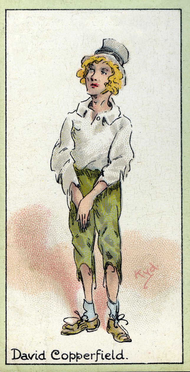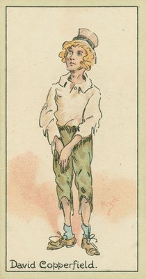 99 männlich · porträt · volle länge · dickensian · viktorianisch · literatur · literarisch · charakter · karikatur · fiktion · fiktiv · roman · junge · protagonist · optimistisch · fleißig · mutig · glücklich · zigarettenkarte · karte · vintage-karte · vintage · unzähmbar · fröhlich · Private Collection / Bridgeman Images