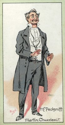 männlich · charakter · porträt · in voller länge · viktorianisch · dickensisch · belletristik · roman · pecksniff · martin chuzzlewit · architekt · heuchler · lehrer · seth pecksniff · zigarettenkarte · karte · vintage · vintage-karte · Private Collection / Bridgeman Images