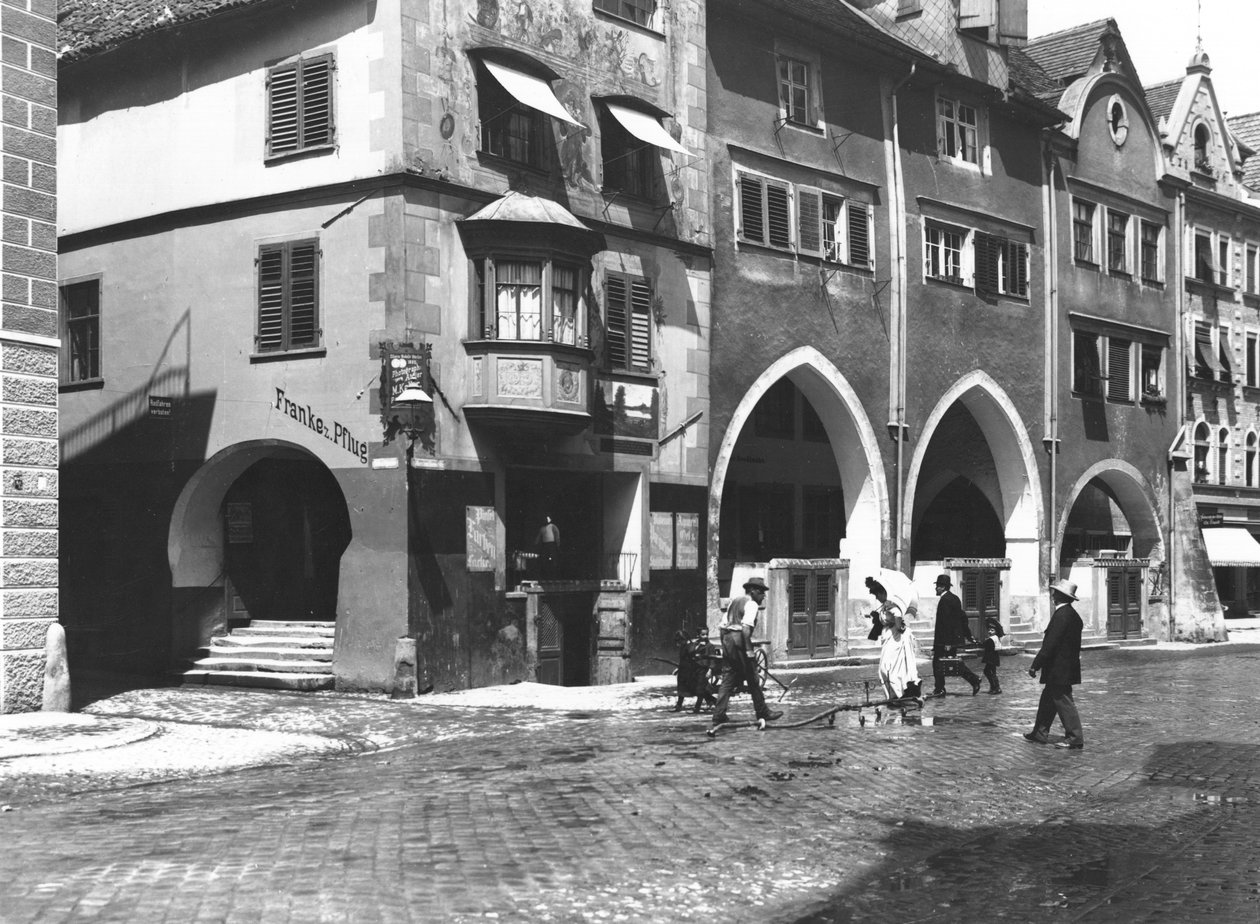 straße · fußgänger · deutsche · volkssprache · architektur · arkade · kopfsteinpflaster · Private Collection / Bridgeman Images |