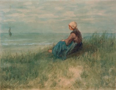 Eine Frau sitzt auf einer Düne und schaut aufs Meer(Een vrouw zit op een duin naar zee te kijken)Jozef Israëls(draughtsman) |