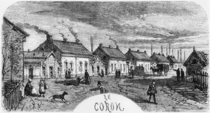 Kohlenarbeiter von Le Creusot während des Zweiten Kaiserreichs, Illustration aus 'Les Grandes Usines' von Julien Turgan, um 1880(Coal Miners of Le Creusot during the Second Empire, illustration from 'Les Grandes Usines' by Julien Turgan, c.1880 )Jules Ferat |