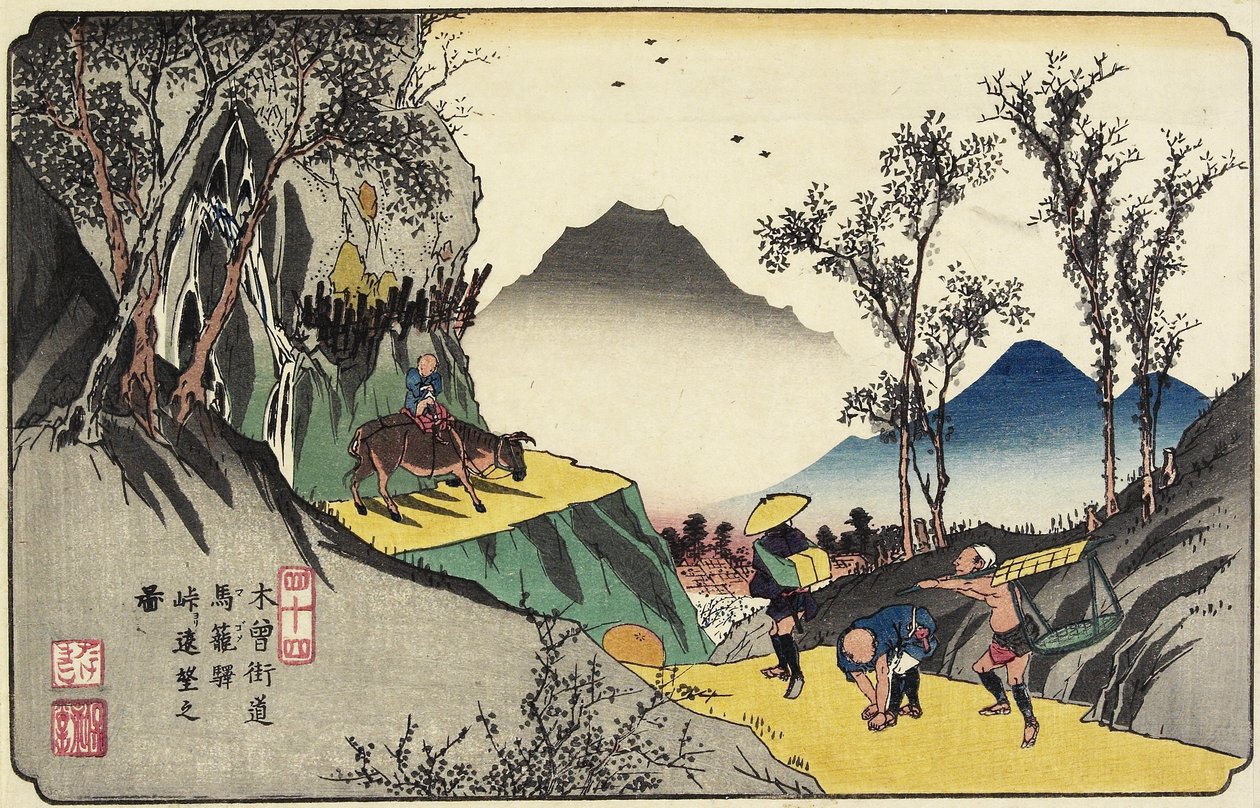 Nr. 44 Ferne Ansicht der Magome-Station vom Pass, 1830-1844(No.44 Distant View of Magome Station from the Pass, 1830-1844)Keisai Eisen |