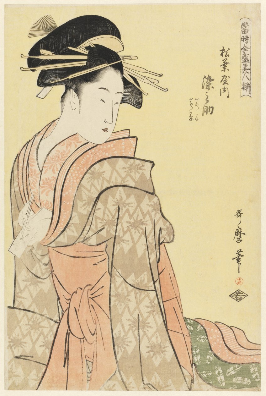 Somenosuke von Matsubaya, aus der Serie 'Array of Supreme Beauties of the Present Day', ca. 1794(Somenosuke of Matsubaya, from the series 'Array of Supreme Beauties of the Present Day', c.1794 (woodblock print))Kitagawa Utamaro |