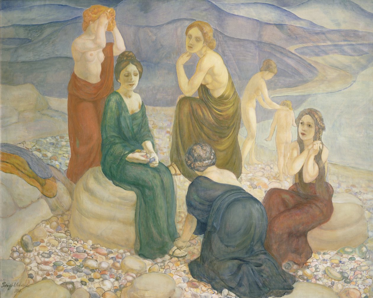 strand · kieselsteine · landschaft · weiblich · frauen · felsen · brust · kieselstein · meer · baden · badegäste · plage · galets · küste · küste · ufer · küste · State Russian Museum, St. Petersburg, Russia / Bridgeman Images