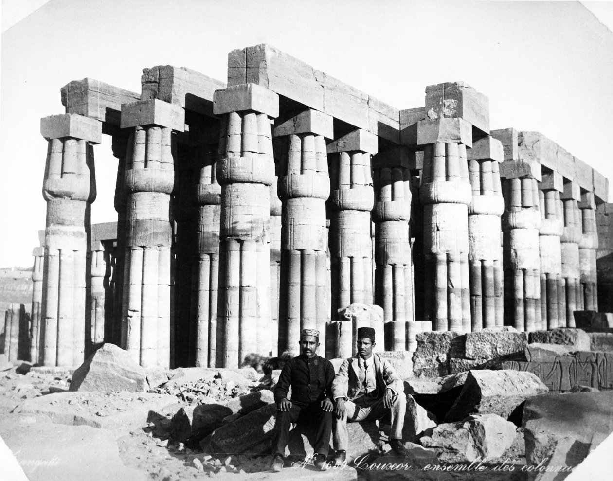 Ansicht der Kolonnade des Hofes von Amenhotep III. in Luxor, ca. 1880(View of the Colonnade of the Court of Amenhotep III at Luxor, c.1880 )Langaki |