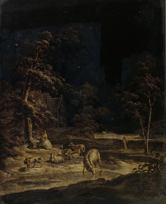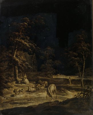 Hirtin mit Schafen(Shepherdess with Sheep)Leendert Overbeek(painter) |