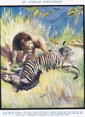 Eine afrikanische Nahrungskette, Illustration aus 'The Science of Life'(An African Food-Chain, illustration from 'The Science of Life' )Leonard Robert Brightwell |