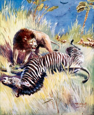 wild · tierisch · tierisch · nahrungskette · löwe · zebra · aggression · aggressiv · raubtier · raubtier · fütterung · natur · aasfresser · geier · pflanzenfresser · fleischfresser · naturwissenschaft · beute · natyre · wild · zoologie · Private Collection / Bridgeman Images