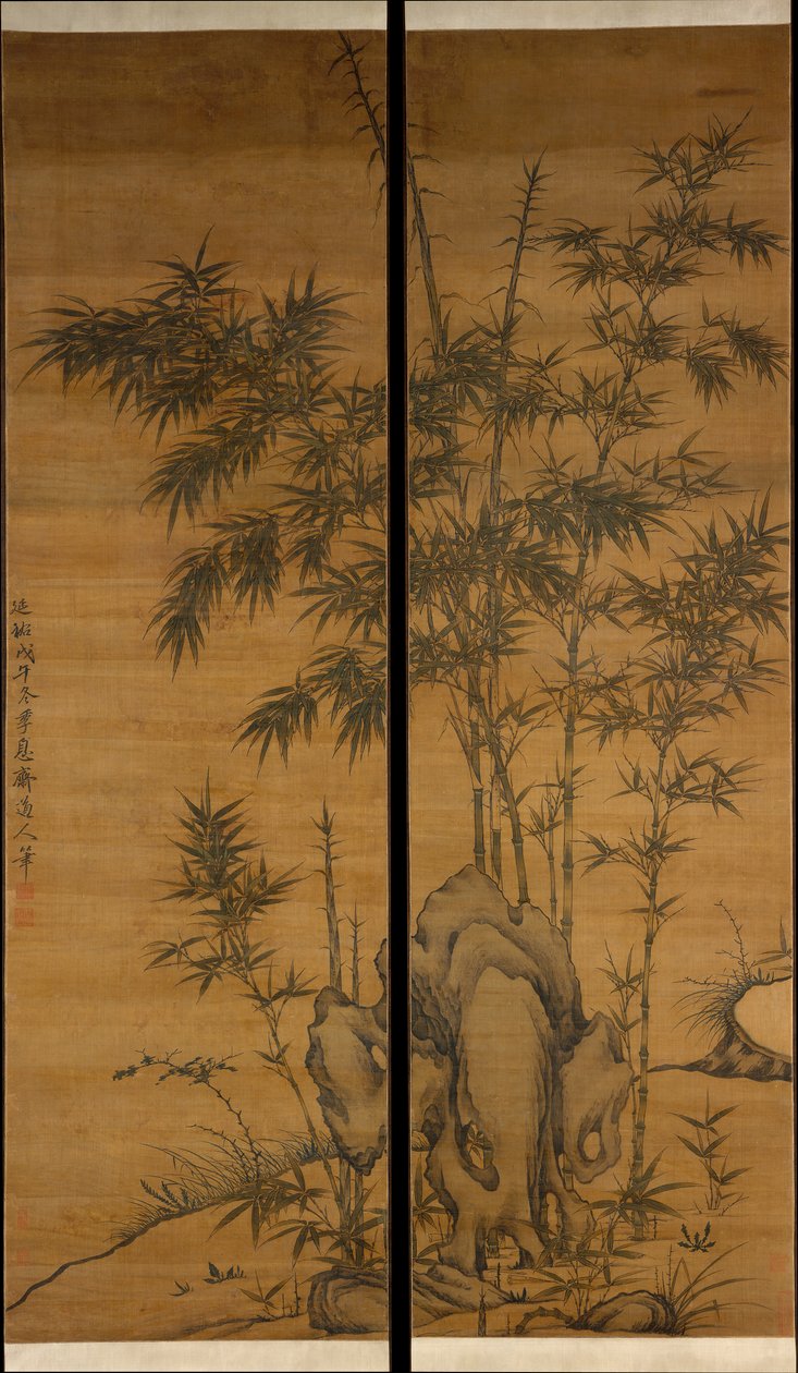 Bambus und Felsen, datiert 1318(Bamboo and rocks, dated 1318. )Li Kan |