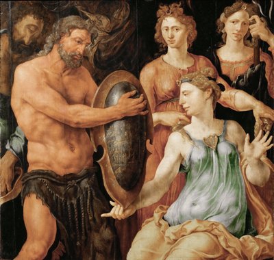 Vulkan überreicht Thetis den Schild für Achilles(Vulcan hands Thetis the shield for Achilles (painting on oakwood))Maerten van Heemskerck |