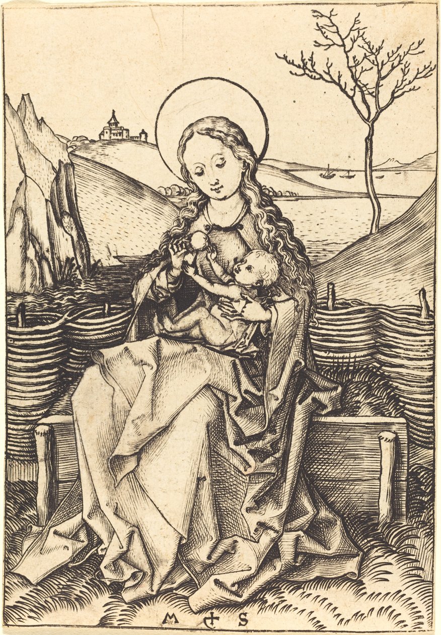 Jungfrau und Kind auf einer grasbewachsenen Bank(Virgin and Child on a Grassy Bench)Martin Schongauer |