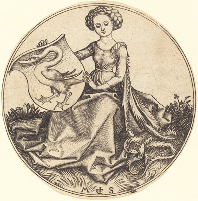 Schild mit einem Schwan, gehalten von einer sitzenden Dame(Shield with a Swan, Held by a Seated Lady)Martin Schongauer |