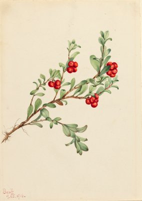 Bergpreiselbeere Vaccinium vitis-idaea minus, 1916(Mountain Cranberry Vaccinium vitisdaea minus, 1916. )Mary Vaux Walcott |