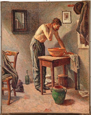 la toilette · männlich · waschen · schüssel · interieur · spiegel · stuhl · schlafzimmer · pointillist · neo-impressionist · küvette · broc · Petit Palais, Geneva, Switzerland / Bridgeman Images