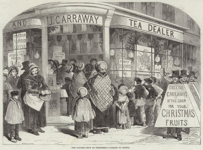 lebensmittelgeschäft · weihnachten · geschäfte · straßenszenen · Private Collection / Bridgeman Images · / Look and Learn
