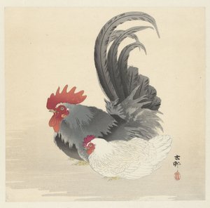 Hahn und Henne mit Küken, 1930er Jahre(Rooster and Hen with Chicks, 1930s)Ohara Koson |