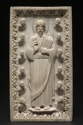 geschnitzt · ottonisch · apostel · italienisch · blumenmuster · elfenbein · jünger · gotik · gedenktafel · jesus christus · heiligenschein · Mailand · Cleveland Museum of Art, OH, USA / Bridgeman Images