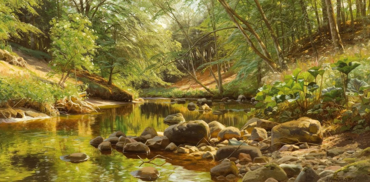 P. Mönsted, Sonniger Waldbach von Peder Monsted