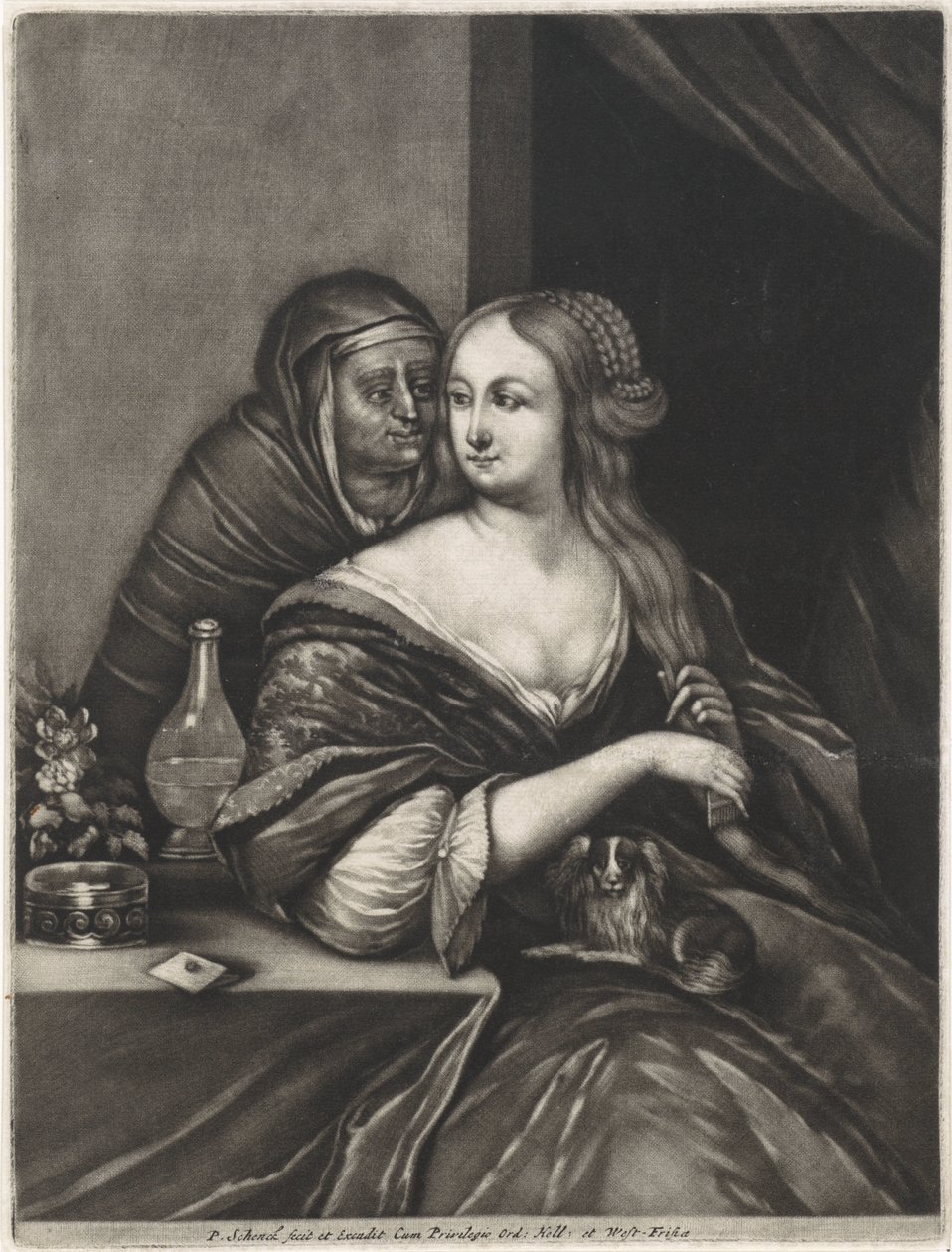 Junge Frau und eine Kupplerin(Jonge vrouw en een koppelaarster)Pieter Schenk (I)(print maker),Pieter Schenk (I)(publisher),Staten van Holland en West Friesland |