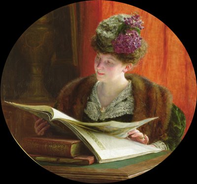 bekannt als cita · geborene vandaele · weiblich · porträt · lesen · pelzkragen · oval · edwardianische tracht · Belle Epoque · Musee d'Art et d'Industrie, Roubaix, France / Bridgeman Images