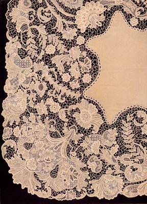Taschentuch aus irischer Spitze, präsentiert mit anderen Spitzenstoffen von den Damen Irlands(Handkerchief of lace of Irish manufacture, presented with other lace fabrics by the Ladies of Ireland (chromolitho))Robert Dudley |