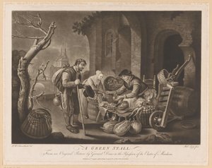 Gemüsestand und Bettler(Groentekraam en bedelaar)Robert Laurie(print maker),Hendrik Willem Schweickhardt(after drawing by),Gerrit Dou(after painting by) |