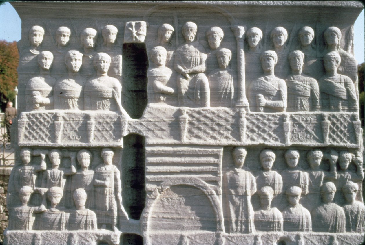 Relief am Sockel des Obelisken von Theodosius I. (347-395), auch bekannt als Obelisk von Tuthmosis III., aus Karnak(Relief on the base of the Obelisk of Theodosius I (347-395) also known as the Obelisk of Tuthmosis III, from Karnak (marble))Roman |