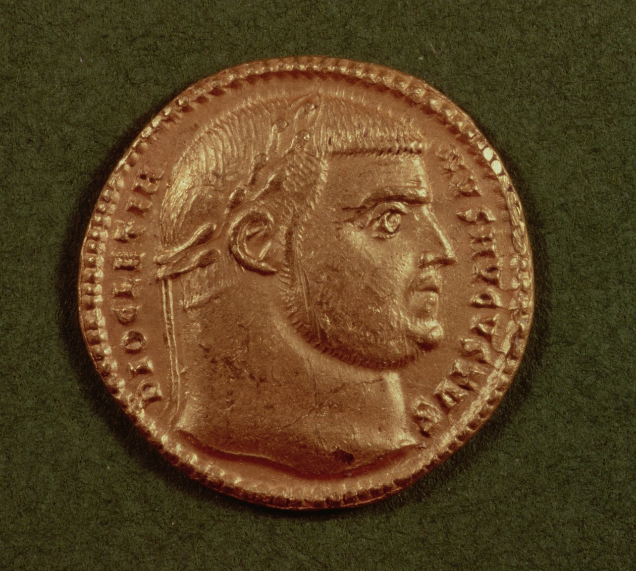Aureus (Vorderseite) von Diokletian (284-305 n. Chr.) mit Lorbeerkranz. Inschrift: DIOCLETIANVS AVGVSTVS(Aureus (obverse) of Diocletian (Ad 284-AD 305) wearing a laurel wreath. Iscription: DIOCLETIANVS AVGVSTVS (gold))Roman |