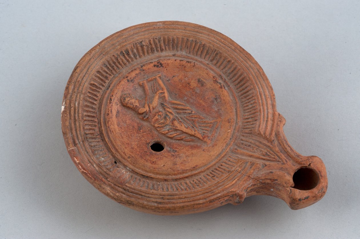 Öllampe · terrakotta · keramik · keramik · verziert · dekoration · zahl · römisch · spielen · musikinstrument · leier · Museo Archeologico Nazionale, Siena, Italy / Bridgeman Images |