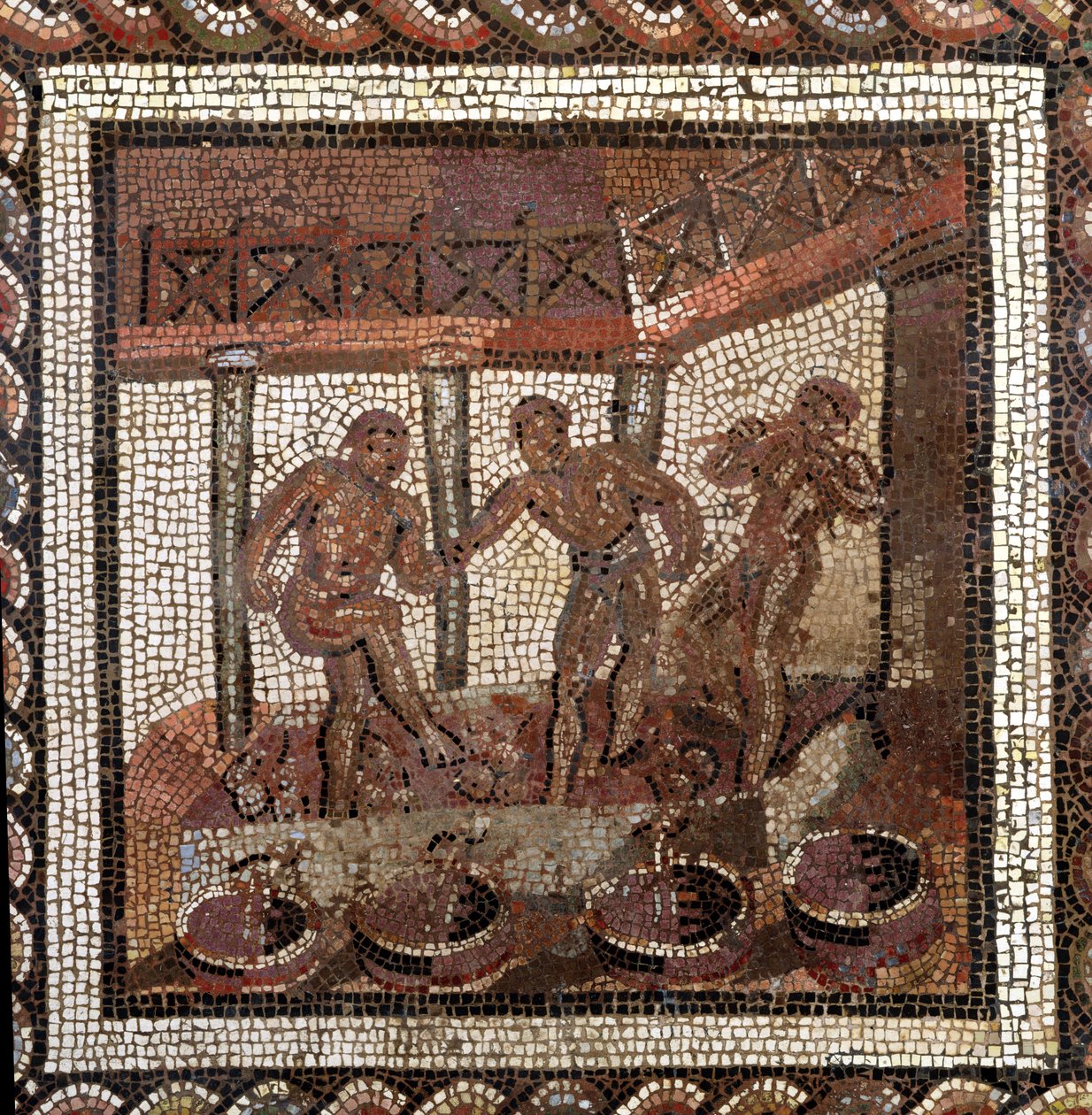 Traubenstampfen, aus Saint-Roman-en-Gal(Treading grapes, from Saint-Roman-en-Gal (mosaic))Roman |
