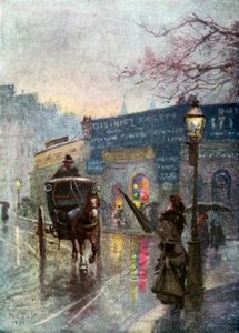 19. jahrhundert · 1900er · 20. jahrhundert · 1910er · armee · kunst · nebel · wetter · kutsche · kavallerie · pferd · tier · farbe · vereinigtes königreich · europa · gebäude · london · england · schatten · bevölkerung · bürgersteig · verkehr · straße · stadtbild · außenansicht (gebäude) · aquarell · künstlerin · künstlerin · Private Collection / Bridgeman Images