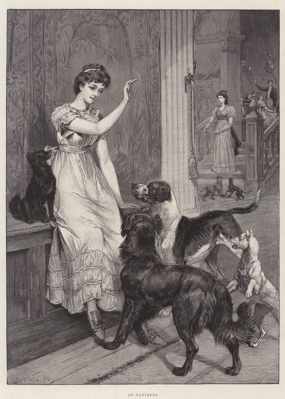 bei patienten · frauen · hunde · haustiere · Private Collection / Bridgeman Images · / Look and Learn |