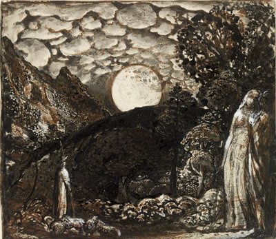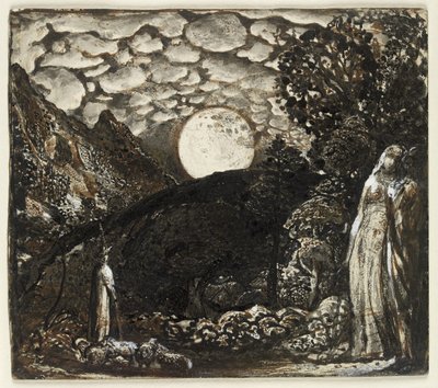 Hirten unter einem Vollmond, ca. 1829-30(Shepherds under a Full Moon, c.1829-30 (pen and brown ink with brush in Indian ink, heightened with bodycolour on white card))Samuel Palmer |