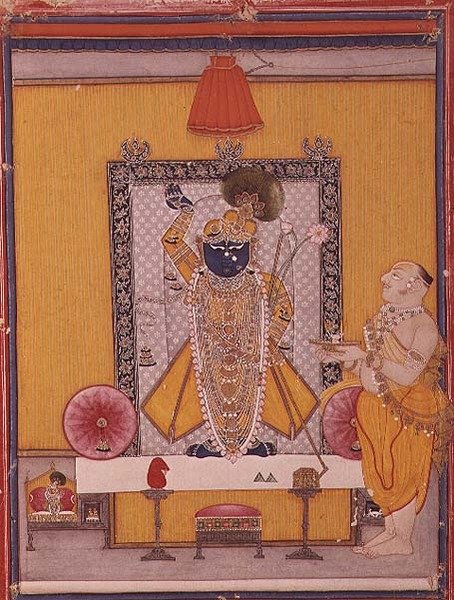 Bild von Krishna mit Verehrer(Image of Krishna with devotee)School Indian |