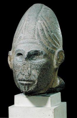 Kopf eines syrischen Gottes, aus Jabbil, Nordsyrien, ca. 1700-1600 v. Chr. (Basalt)(Head of a Syrian god, from Jabbil, Northern Syria, c.1700-1600 BC (basalt) (see also 223210))Syrian Syrian |