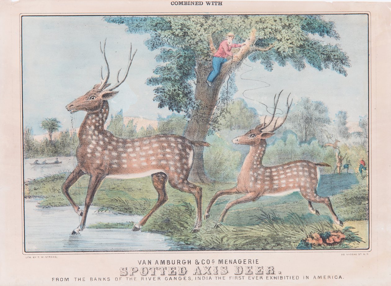 zirkusplakat · hirsch · baum · axis deer · tier · tiere · baum · klettern · lasso · inserat · werbung · werbung · Shelburne Museum, Vermont, USA / Bridgeman Images |