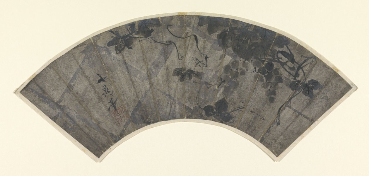 Fächerblatt mit Trauben und Weinranken(Waaierblad met druiven en wijnranken)Tani Buncho(draughtsman) |
