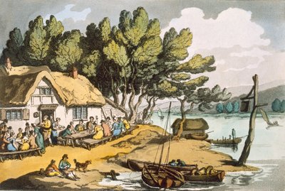 newport · isle of wight · großbritannien · england · großbritannien · englisch · landschaft · fluss · flussufer · gasthaus · eel pye house · tagesausflügler · urlauber · tourist · touristen · mittagessen · mittagspause · karussell · trinken · essen · freizeit · genuss · ruderboot · boote · hund · mann · frau · sommer · Sommerzeit · Private Collection / Bridgeman Images