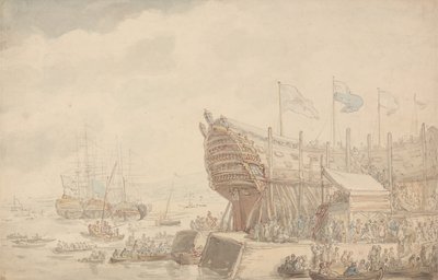 Der Stapellauf der H.M.S. 'Hibernia' in Devonport, ca. 1804(The Launching of H.M.S. 'Hibernia' at Devonport, c.1804 (pen & ink & watercolor on paper))Thomas Rowlandson |